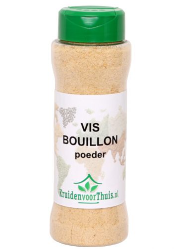 Visbouillon poeder is een zeer verfijnde visbouillon van kabeljauw met een milde doch krachtige vissmaak. Zeer geschikt voor gerechten waaraan een extra vis smaak gewenst is. Zoals bijvoorbeeld vissoep, vissalade, maar ook in visstoofpotjes.